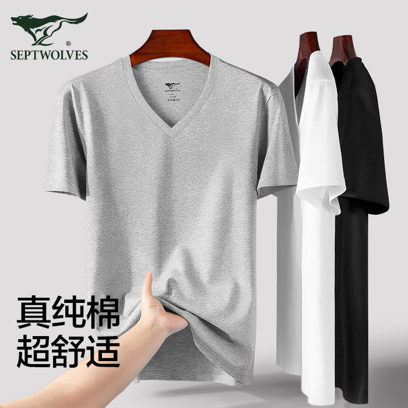 セブンウルブズメンズコットン半袖Tシャツベスト チキンハートVネック 2026年新薄コットン ホワイトオールドマンアンダーシャツ