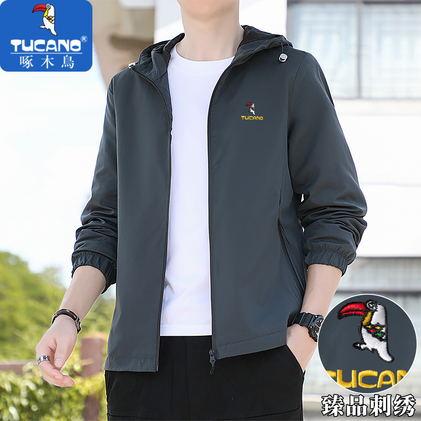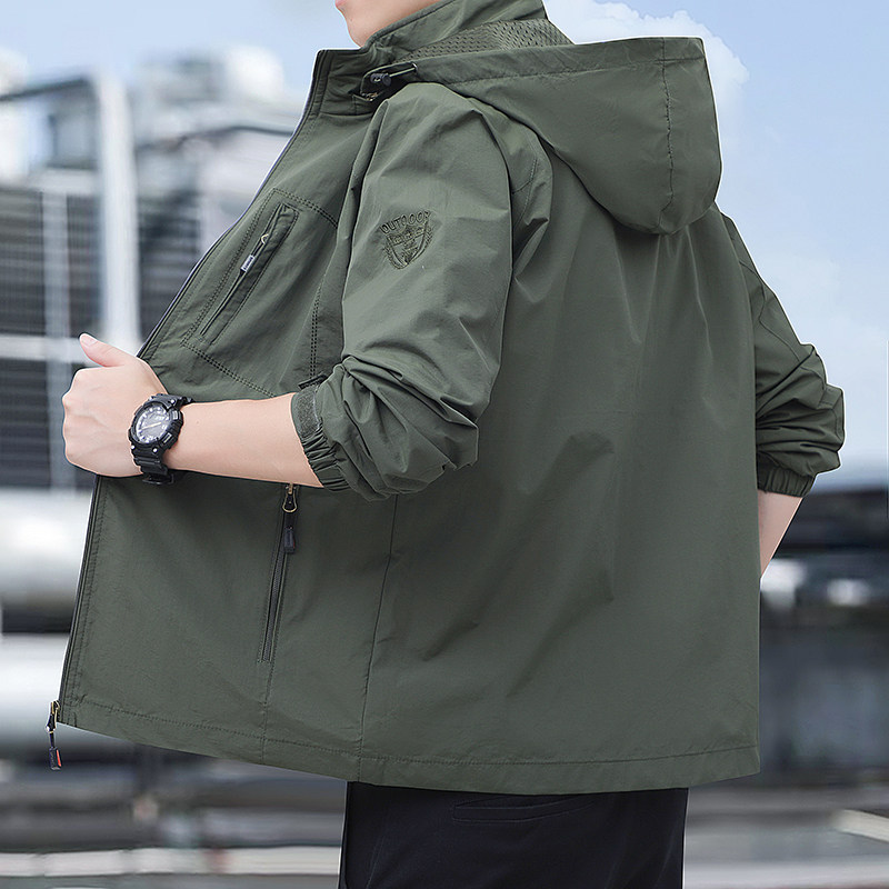 ウッドペッカーのスタンドアップカラーメンズジャケットジャケット 春と秋の防風防水カジュアルで通気性の良い日焼け止めトップス
