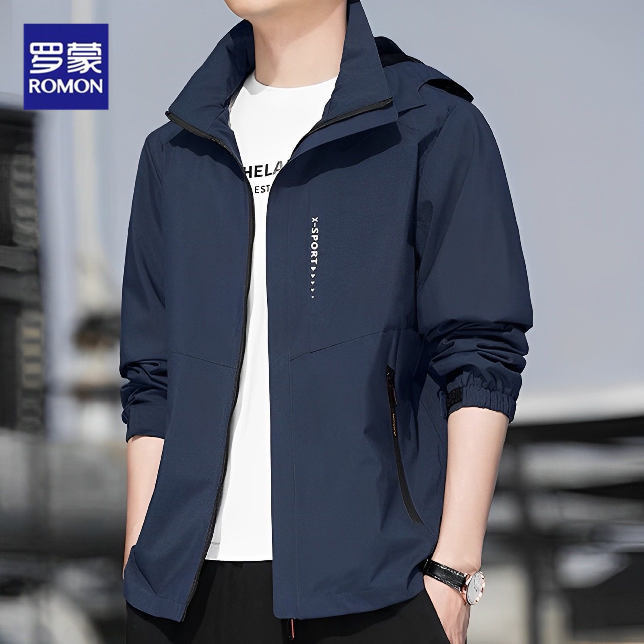 ローモンドの人気の春・秋の新しいトレンチコート、カジュアルメンズジャケット、メンズプラスサイズジャケット、カジュアルフード付きジャケット