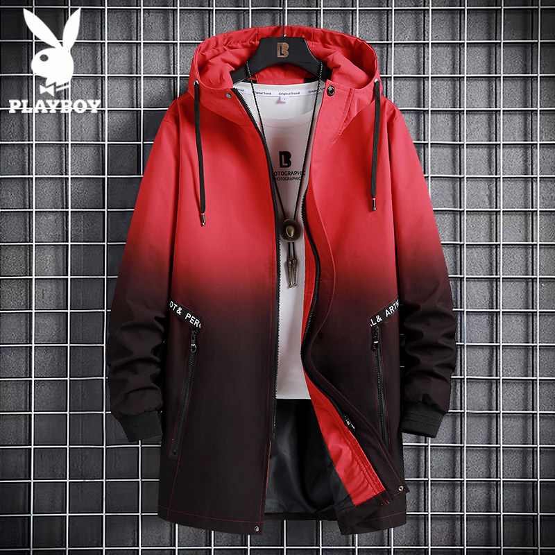 プレイボーイ ミディトレンチコート メンズ 春と秋 ゆったりとしたフード付きジャケット 秋冬 オムブレ プラスサイズコート