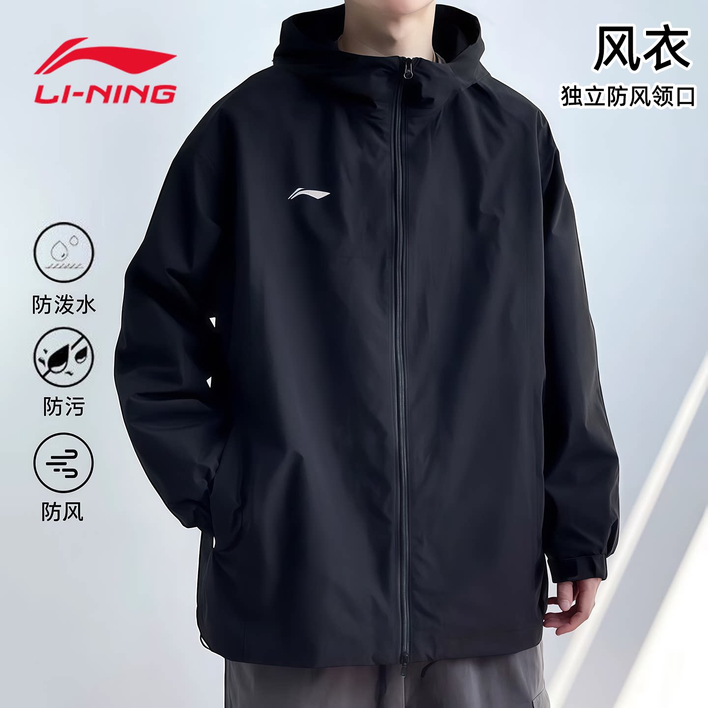 リー・ニンはトレンチコート、メンズの春秋、黒のフード付きゆったりした登山服、ランニングウェア、サイクリングカーディガンを着ています