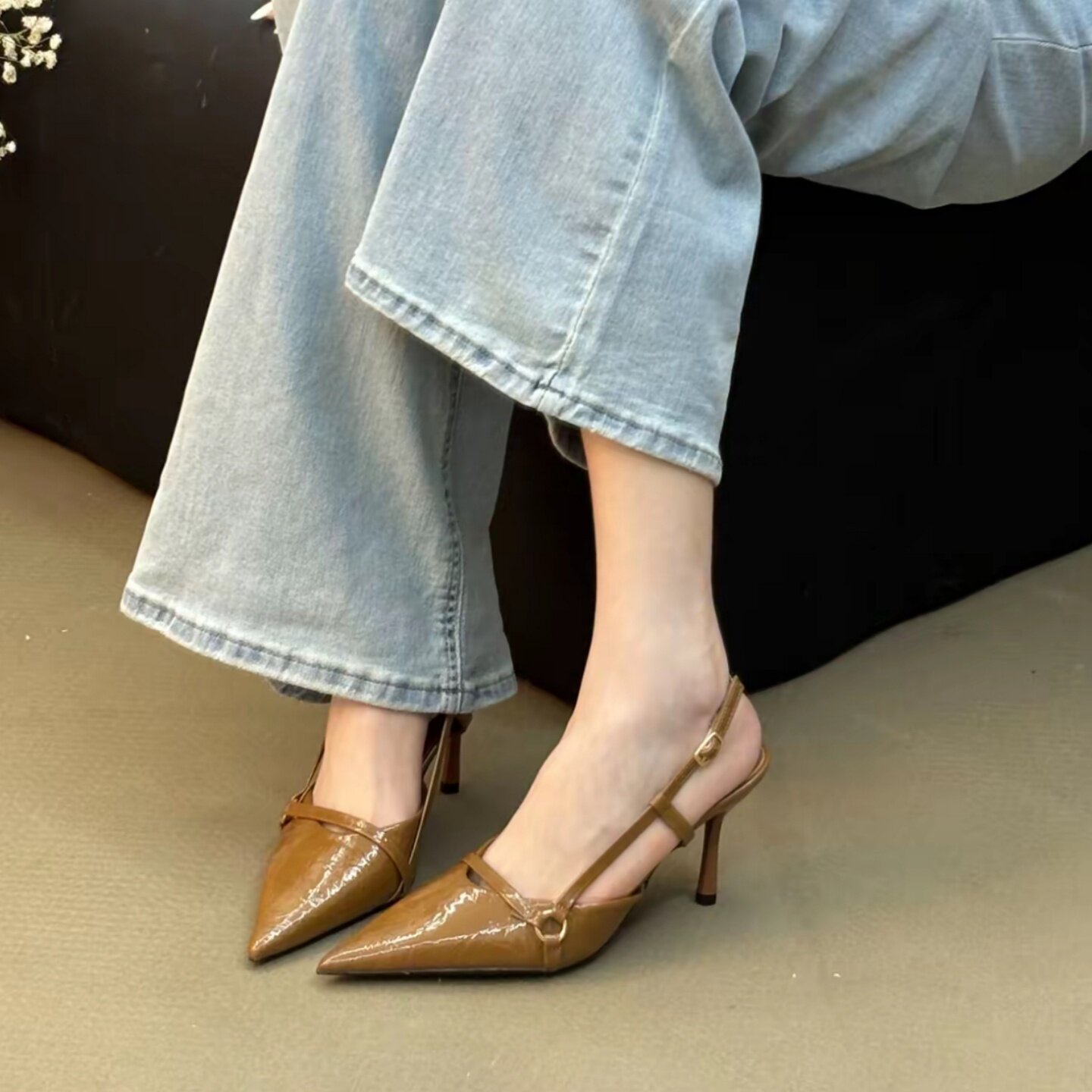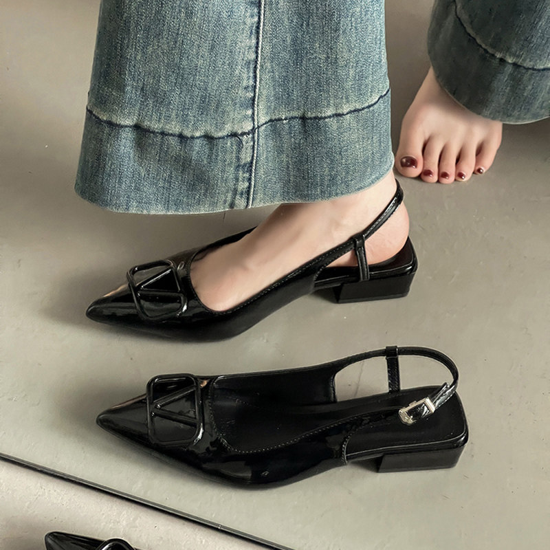 ソフトレザーバージョン~レトロな気質、ポインテッドトゥトゥバンサンダル、女性用メタルバックストラップ、キトンヒール、ローヒールパンプス