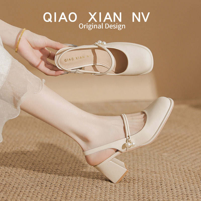 巨大なソフト! 夏のつま先で包んだサンダル、チャイナスカート付きのハイヒールのバックスペースシューズ、メリージェーンシューズ、ハーフスリッパ、女性用の靴、革靴