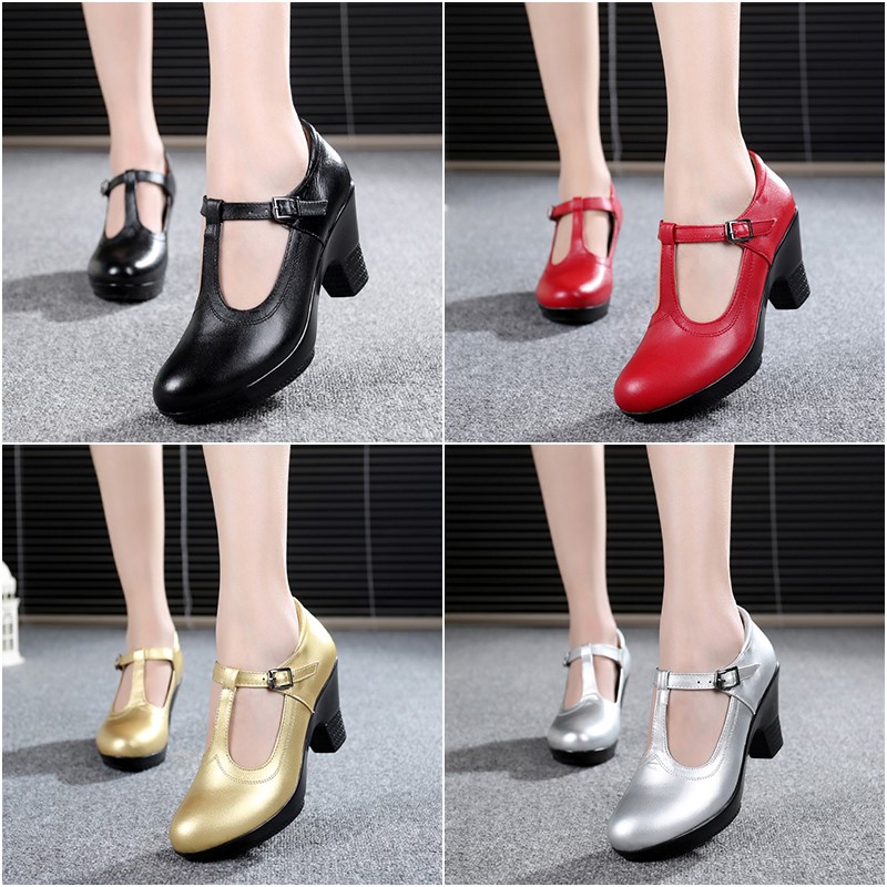 秋のレザースクエアダンス用キャットウォークシューズ、ハイヒールのプラットフォームパンプス、女性用シューズ、銀色のT字型厚手ヒールのプラットフォームTバック
