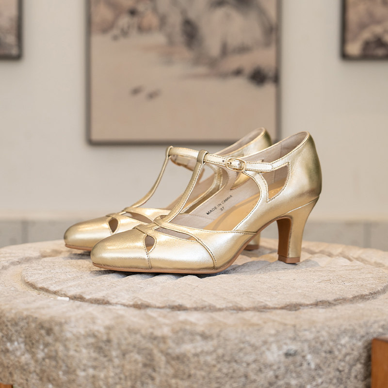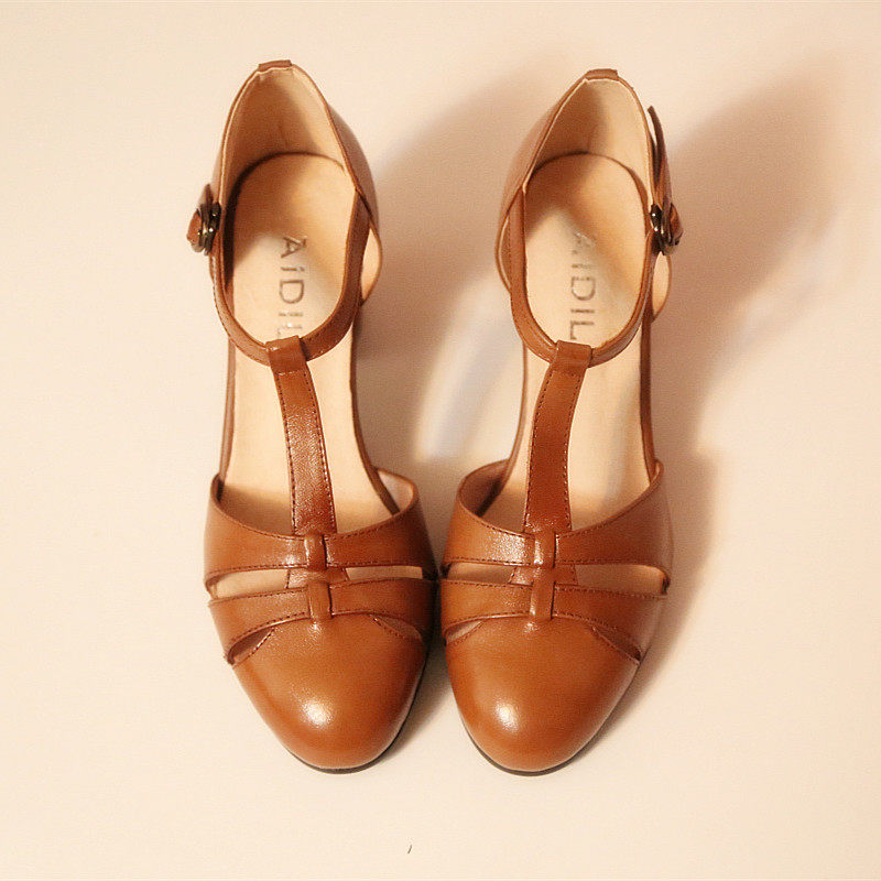 5. 純正JAVレトロ女性用シューズ Tストラップ メリー・ジェーン 1930年代中華民国スタイルのワイングラスヒール 中空レザーチーサムシューズ