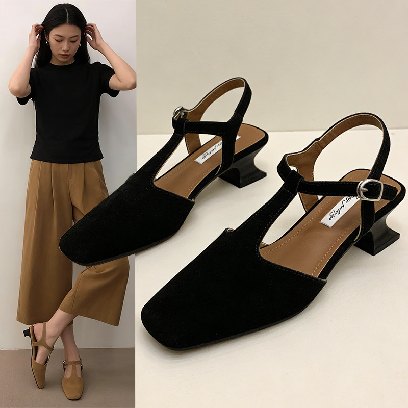 2026年モデルの新しいニッチスタイル、レトロなメリージェーンT字型、ファッショナブルな猫ヒール、サンダル、女性用スティレットヒール、つま先のシングルシューズ、女性用