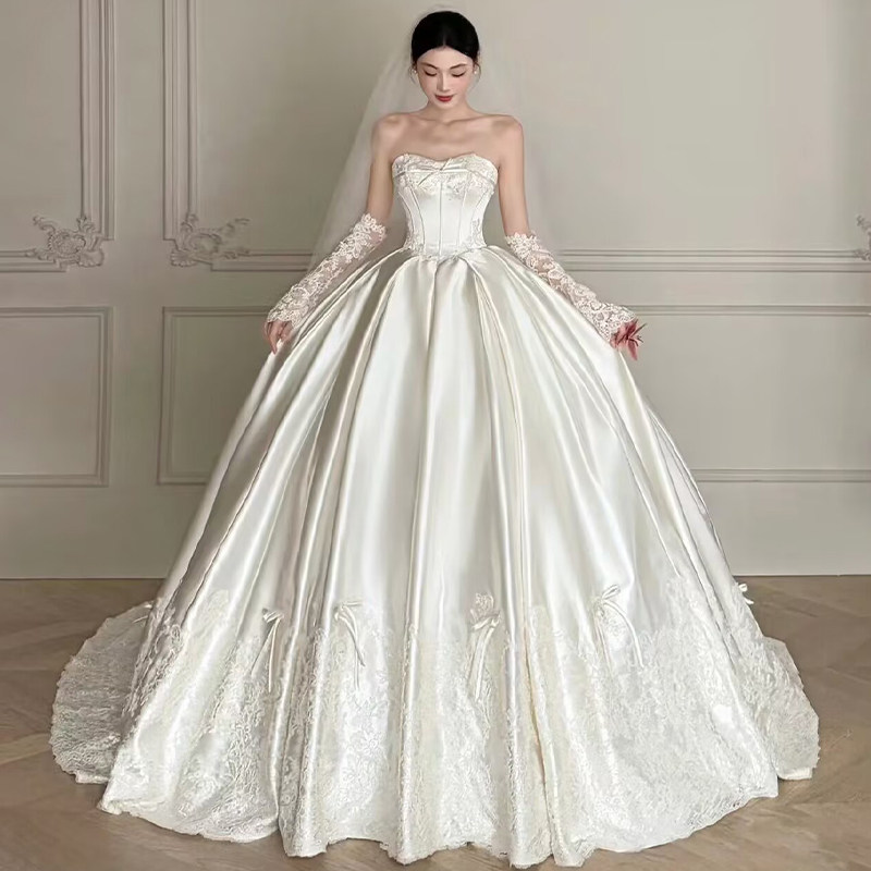 サテンのメインウェディングドレス 2026年新しいプリンセスブライド 小さめの重い仕事 フレンチラグジュアリーの高級センス ロングトレーリングプラスサイズ