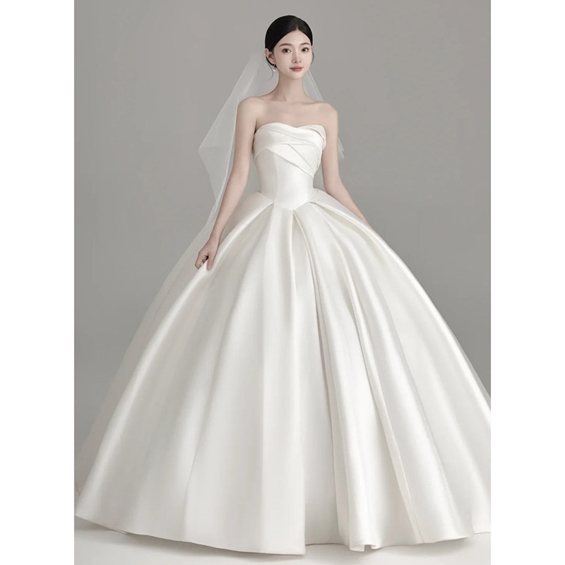 高級バンドーサテンウェディングドレス ブライダル 2026年新しいメインヤーン ライトラグジュアリー ハイエンドテクスチャー シンプルでアウトゴーイングの糸 ビッグテール