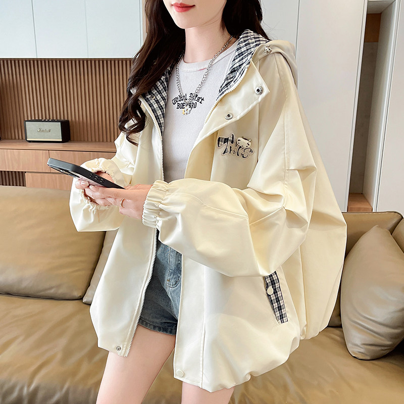 グリーンフード付き日焼け止めジャケット 女性用薄身 春・秋 2026年春 新しいゆるいレイジー日焼け止め衣類カーディガントップ