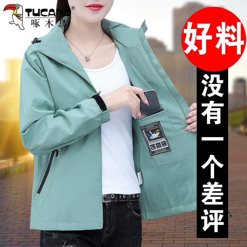 ウッドペッカー アウトドアジャケット ウィメンズ 春 2026 新しい春と秋 ゆったりしたプラスサイズ カジュアルな多用途ジャケット
