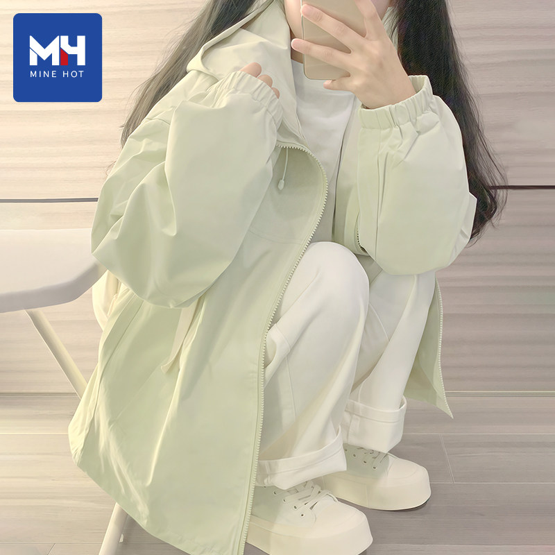 カレッジスタイルのサブカラーブロッキングフード付きトレンチコートジャケット 2026年春秋 新入生中高生デザイントップ
