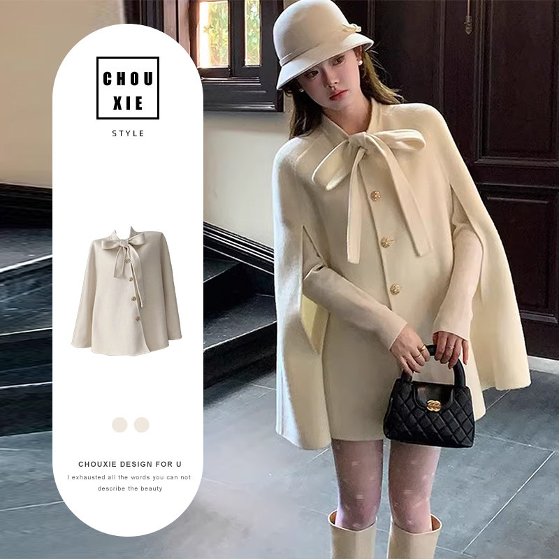 早春の贅沢感は独特でとても美しく、今年の人気ケープ、ウールコート、ヘプバーンの小さな香りのウィンドウールコートガール