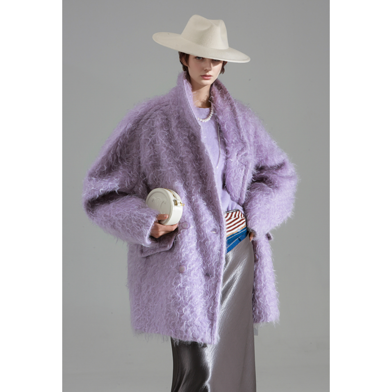 10/ ラグジュアリー クラウドベルベットカールモヘアブレザー襟、ルーズコート 女性用リバーシブルウールコート 秋冬