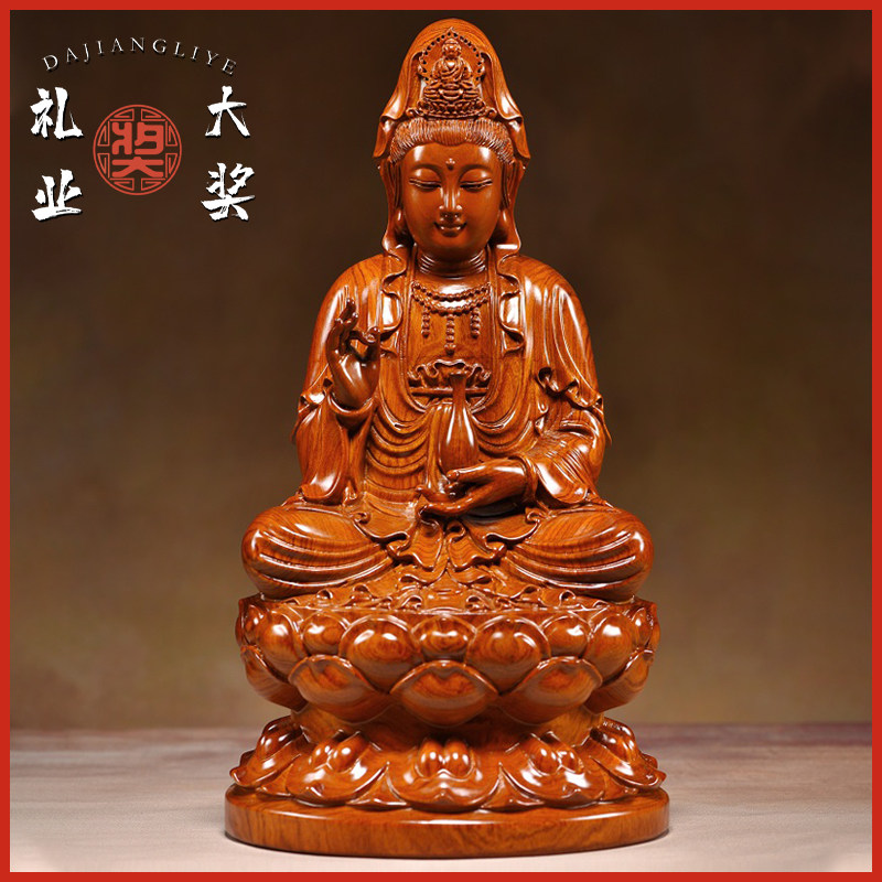 ローズウッド彫刻、蓮、観音菩薩、仏像装飾品、無垢木彫刻、家庭供物、観音仏像の手芸品