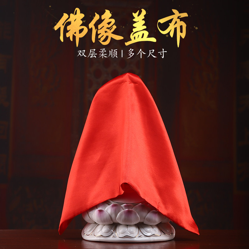 仏像の赤い布は菩薩を赤い絹の布で覆い、その布は関音の富神像を覆っています