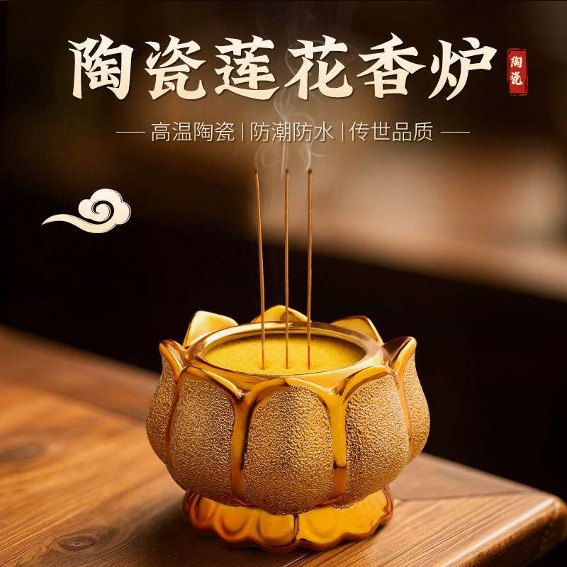 仏の家用の陶器蓮香炉、室内供香、観音財神挿入香、香鉢焼き香炉