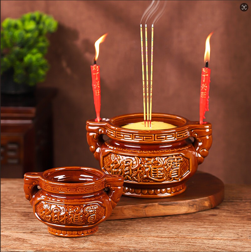 香炉:家庭用陶器、香炉、室内の財神供物、お香鉢、砂金、仏教の器具、寺院、仏像
