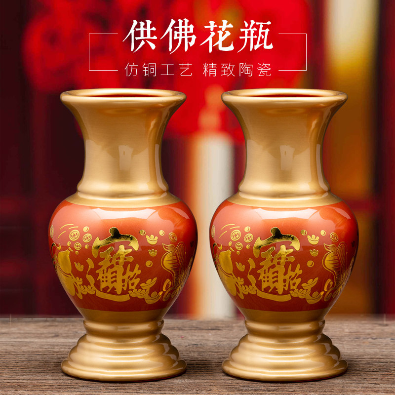 仏像の前蓮花瓶 家 金砂の神 花瓶 仏のための花瓶 仏陀の礼拝台 仏壺 陶器瓶