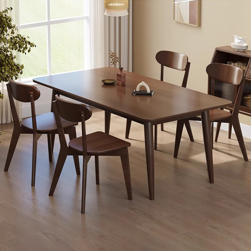 無垢材のダイニングテーブルとチェアの組み合わせ、モダンでシンプルな家庭、小さなアパート、木製テーブル、クルミのレストラン、長方形のダイニングテーブル