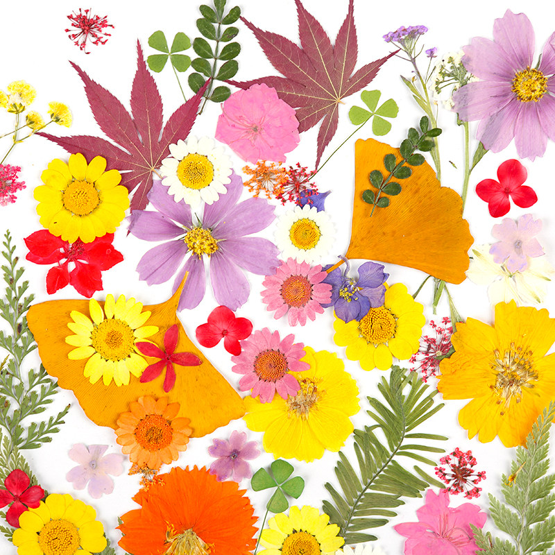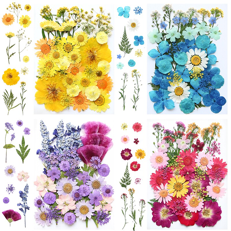 プレスドフラワーミックスドライフラリーフペーストペインティング、エンボス加工本物の花標本、手作りドライドグルード、DIY素材パッケージ