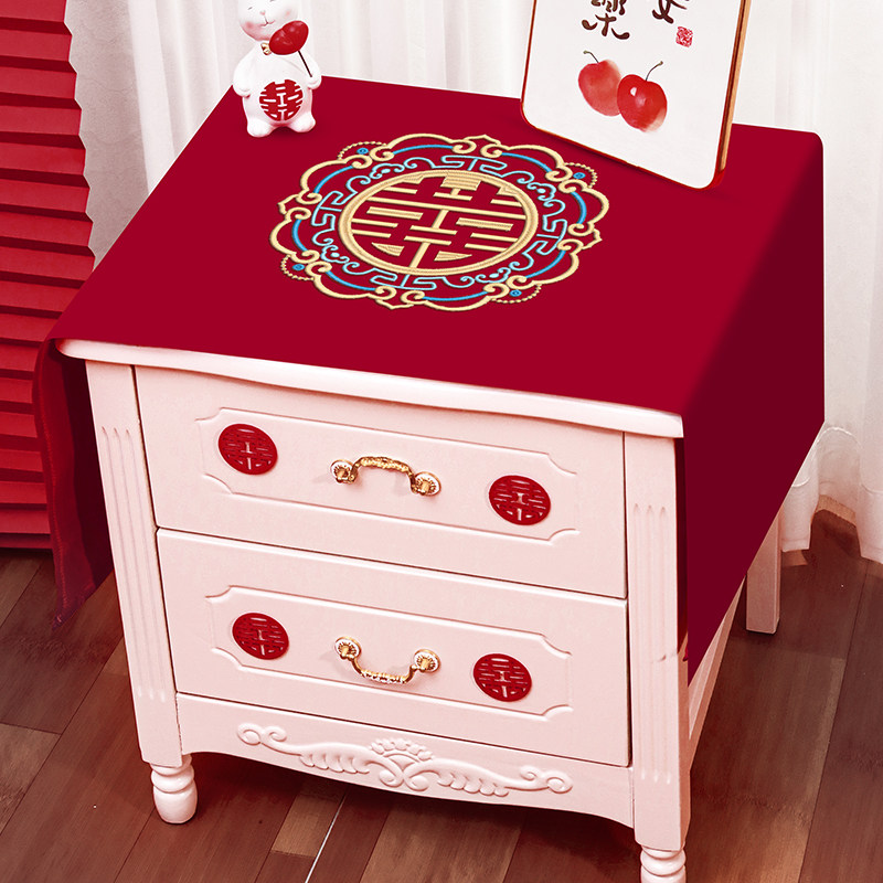 結婚式の寝室、ベッドサイドテーブルカバー、男性用結婚式の部屋の装飾、赤い粉布の装飾、結婚用品