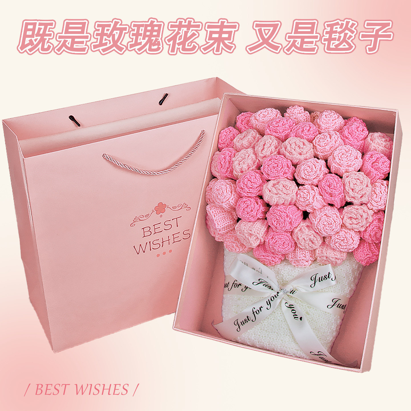 ローズブーケウールブランケット、完成品、手織りの花、ガールフレンドへの誕生日プレゼント、実用的で高級なもの