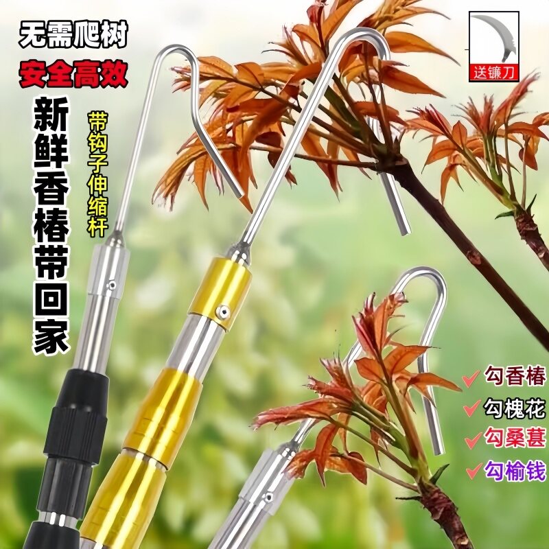 フック付きトゥーンピックアーティファクト、伸縮式ロングロッド、厚み付きステンレススチール、長さ調整可能なトゥーン蕾、ローカスト、フラワーピッキングアーティファクト