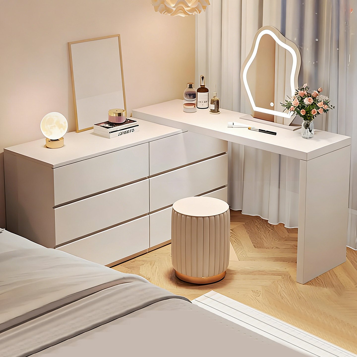 2026年モデルの新しいメイクアップテーブル、スレートドレッサー、チェスト・オブ・ドロワーズ、統合された寝室、クリーム色、レトロスタイル、小さなアパート、シンプルでモダンなデザイン