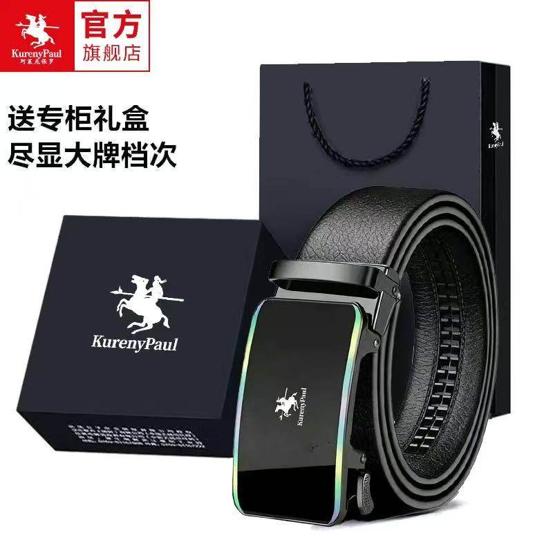 ポール Genuine Mens 本物レザーベルト 自動バックル ビジネスカジュアルベルト ブラック