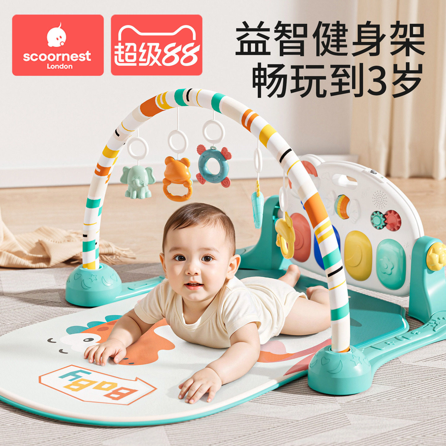 北宜奇公式旗艦店ペダルピアノ ベビーフィットネスラック 新生児の幼児が横になって遊ぶ 0-1歳