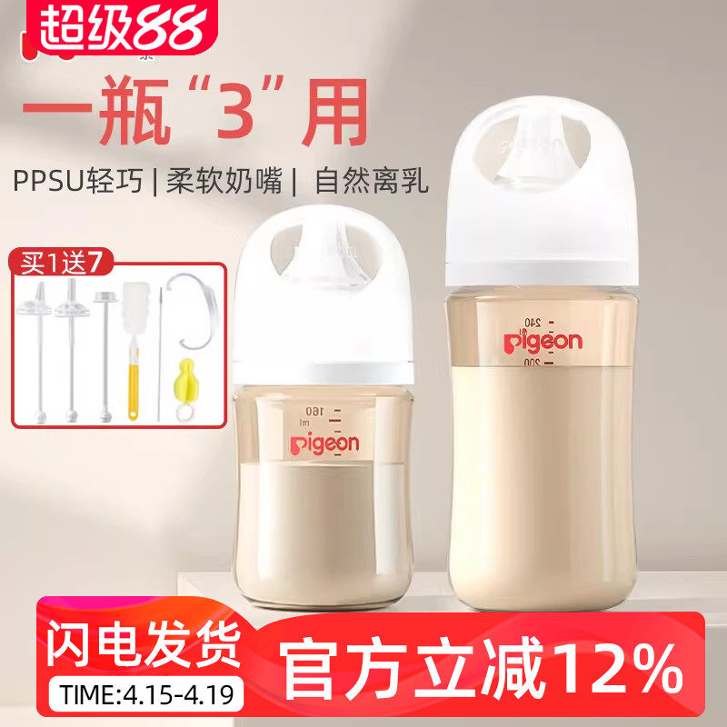ピジョンPPSUの哺乳瓶、新生児用、広口径の哺乳瓶、抗疝痛ストロー、ブランド、1歳・2歳以上