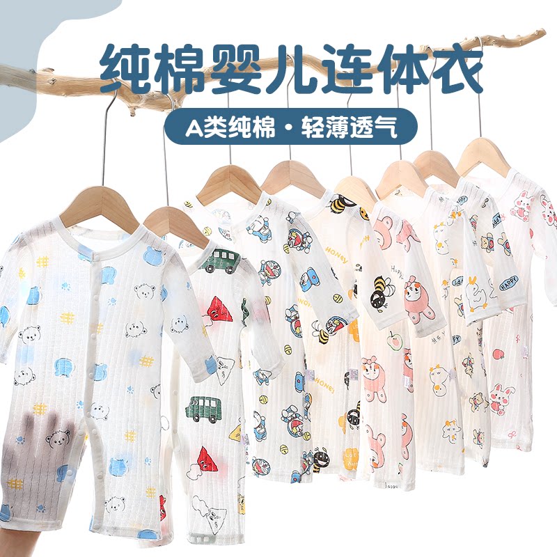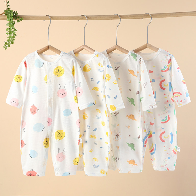 ベビー夏用薄手エアコン服、長袖ロンパース、新生児服、純綿の萩パジャマ、ベビー夏服