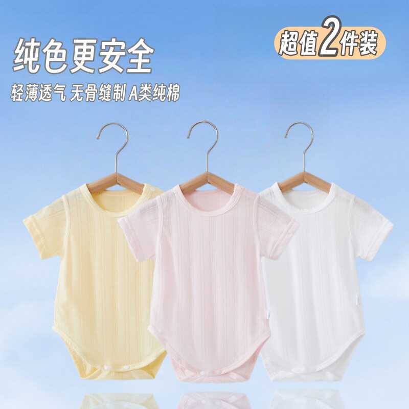 新生児用ジャンプスーツ サマー 薄手ベビーコットン半袖 HA スーツ クロールスーツ トライアングル バットラップ パジャマ 無地