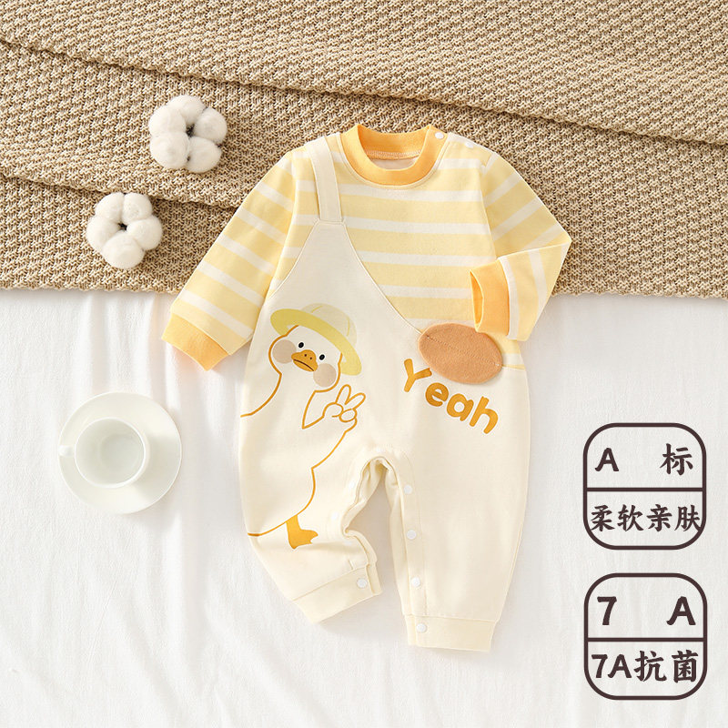 ベビージャンプスーツ 春と秋のかわいい小さな黄色いアヒル ベビーハ 服 ラウンジウェア 新生児コットン長袖外出服