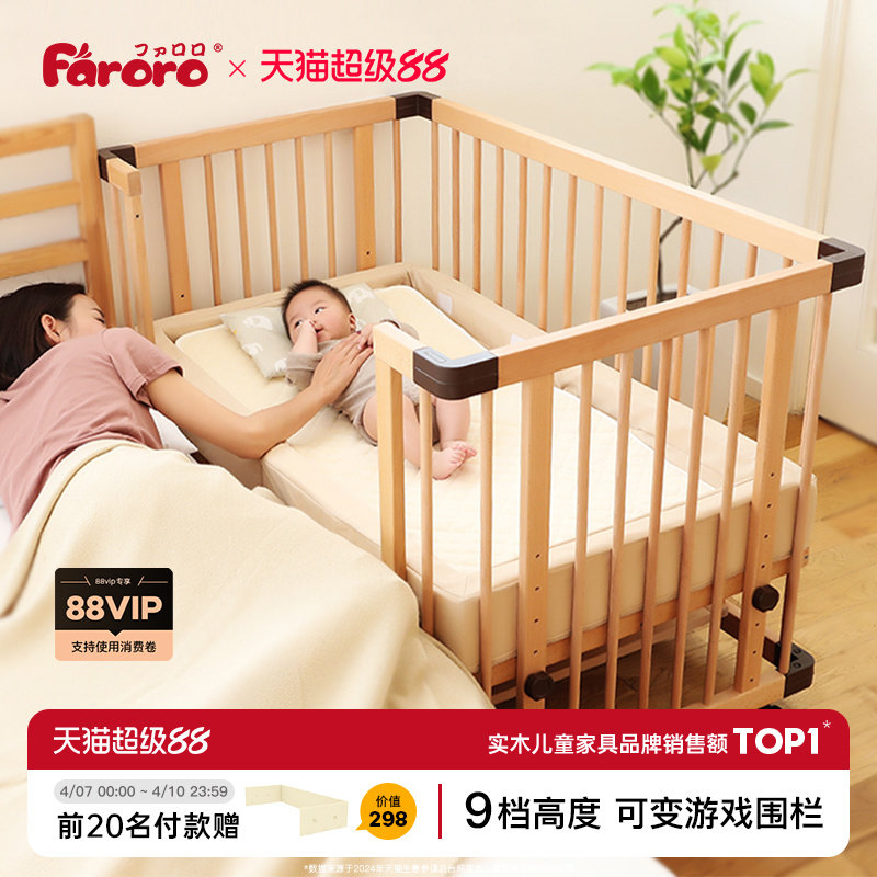 Faroroベビーベッド、ソリッドウッドベビーベッド、多機能スプライシング、クイーンベッド、新生児や幼児向けのモバイルベビーベッド