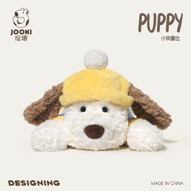 楽しいルビーの子犬ぬいぐるみ、枕で寝かせられるかわいい人形、女の子の誕生日プレゼント、ベッドの上の人形