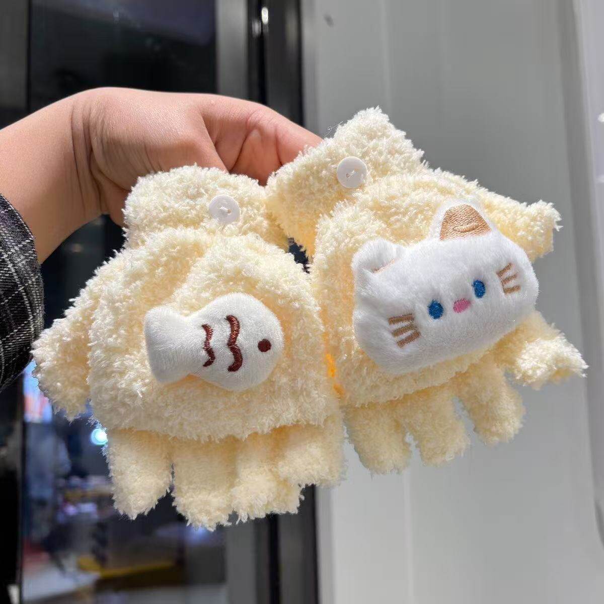 秋冬のかわいいぬいぐるみ 猫の爪フラップグローブ 女子高生のぬいぐるみ 暖かい書き物 ハーフフィンガーグローブ