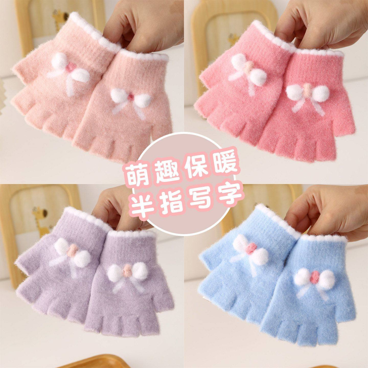 冬の韓国版子供用手袋。フリースでかわいく、暖かく防寒し、女の子や生徒がハーフフィンガー、ファイブフィンガー、ハーフフィンガーを書く