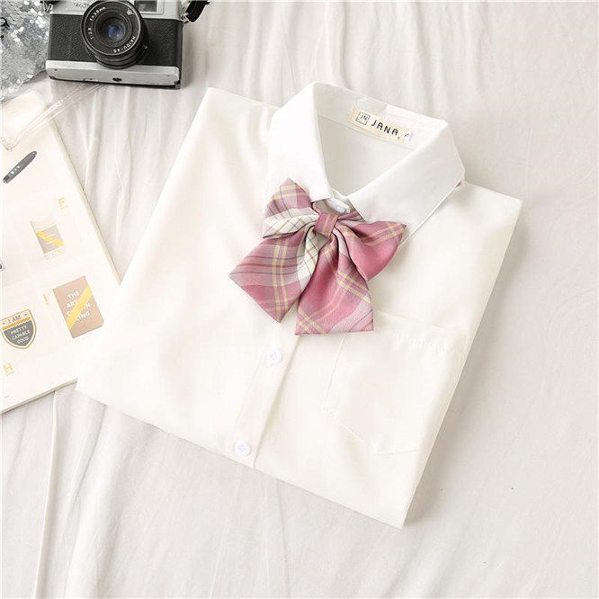 春秋の女子長袖トップス、新入生の白いシャツ、子供用フリースの厚み付け、JKの制服、ネクタイシャツ