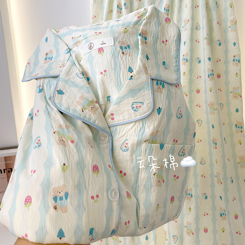 授乳中の妊婦向けクラウドコットン産褥服 出産を待つパジャマと着物セット 春夏薄いVは授乳時に屋外で着られます