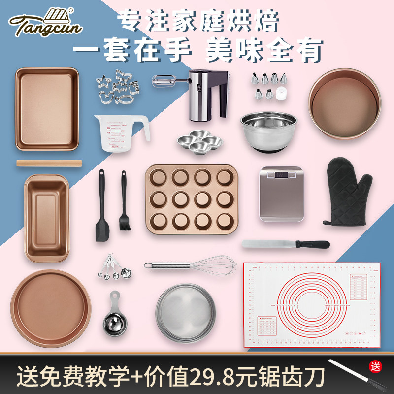 ベーキング用道具セット:入門レベルの家庭用ベーキング初心者、ケーキとビスケットの材料、小型オーブン、調理器具のフルセット