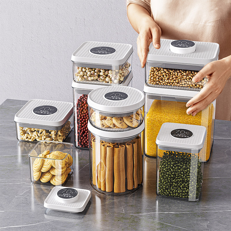良い助手:プレス型の穀物密封瓶、食品グレードの乾物保管箱、保管スナック、プラスチック製の保存瓶