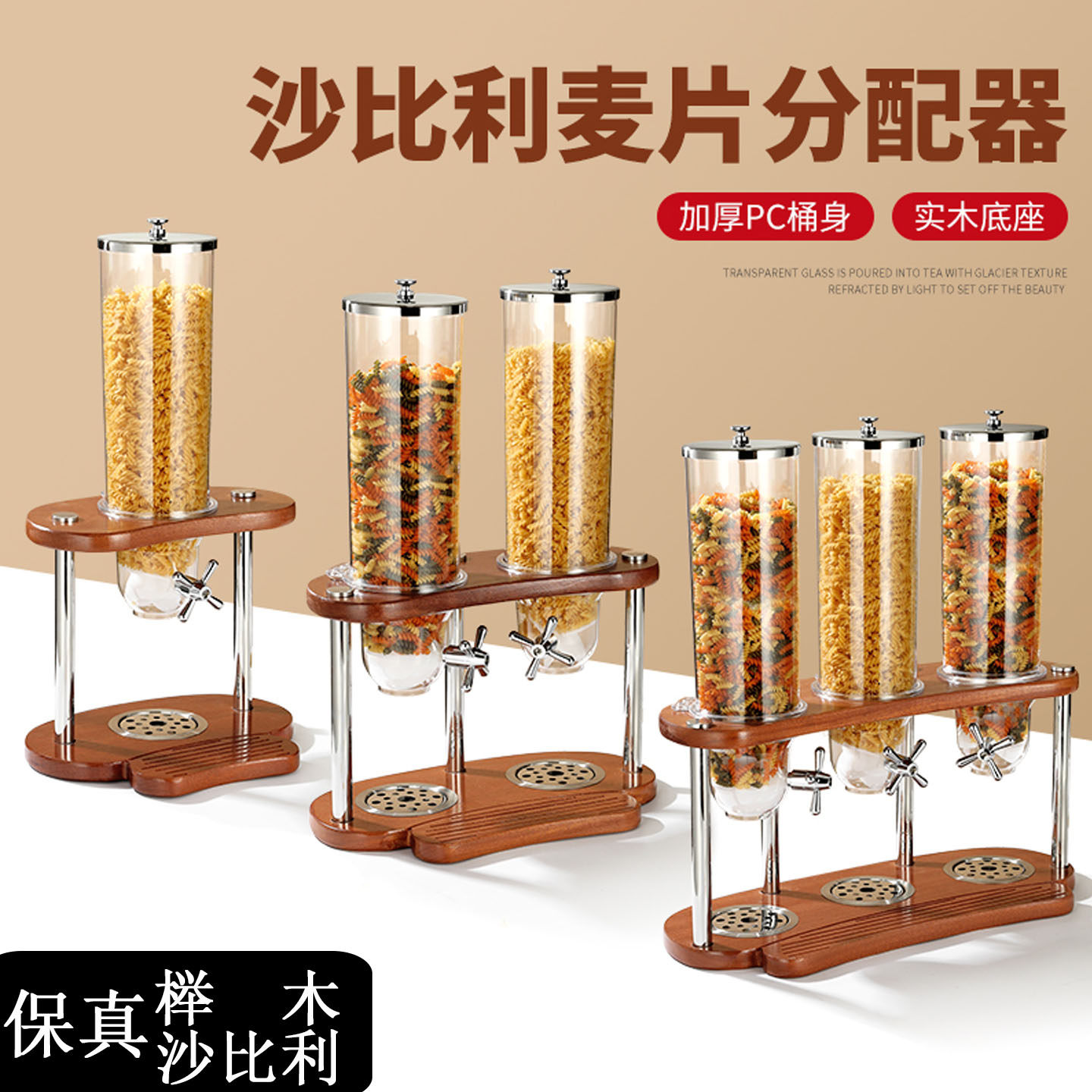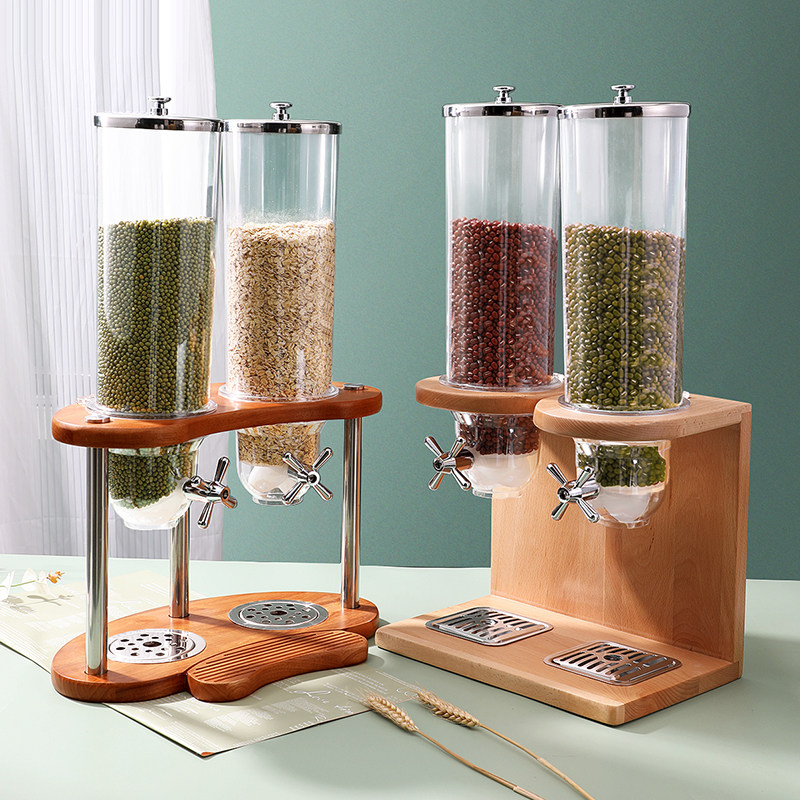 無垢材ベースシリアルディスペンサー ホテルビュッフェノブ シリアルマシン グレイン マルチグレイン オートミールジャー ダブルトリプルヘッド