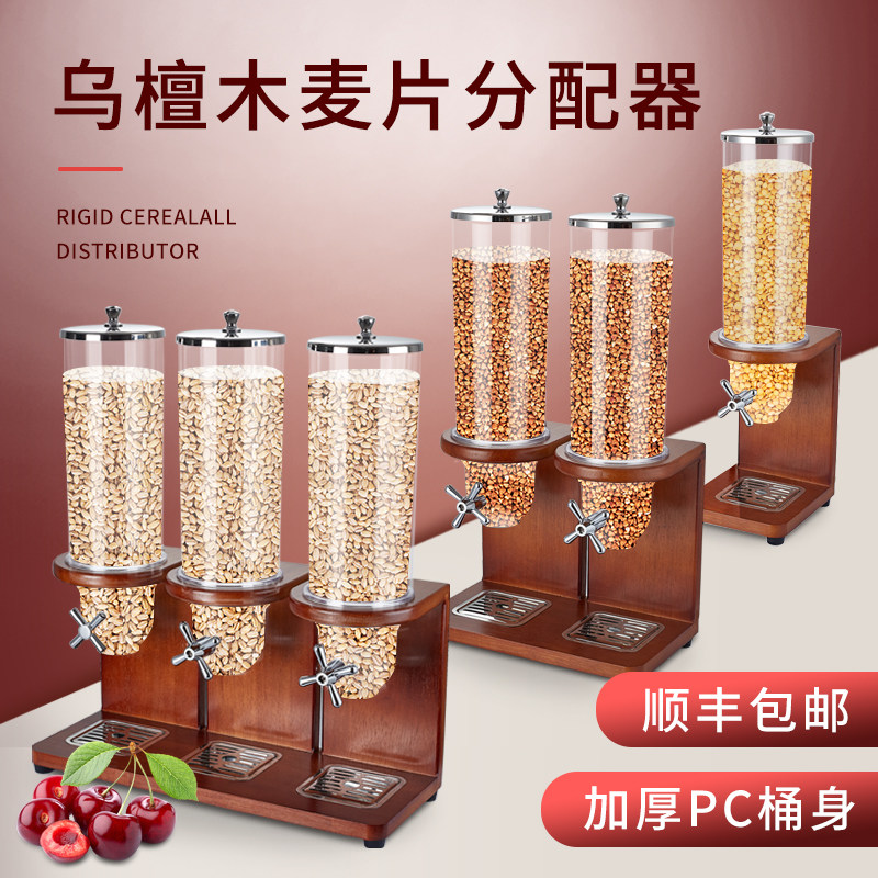 ソリッドウッドシートシリアルマシンディスペンサー、ホテルビュッフェ、シリアル、オート麦、マルチグレインジャー、ダブルトリプルヘッド、ダストバケツ