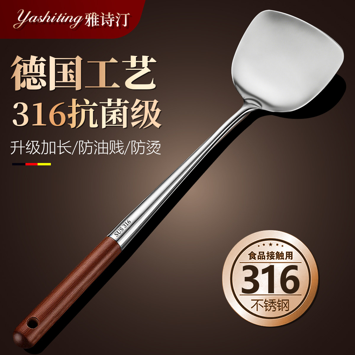 316個のステンレス製ヘラ 食品グレードの家庭用炒め物 ヘラ 鉄鍋 特殊炒めスプーン 木製ハンドルキッチン用品セット