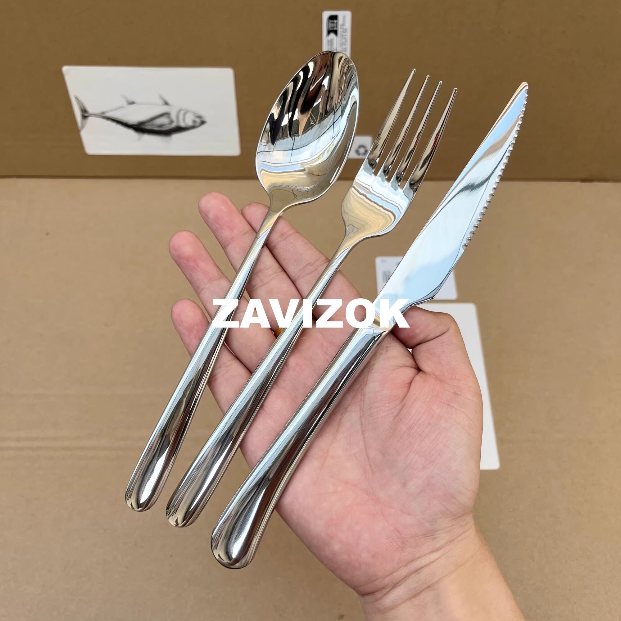 厚みをつけたステンレス製の西洋食器、ステーキプレートセットナイフとフォーク、2ピースセット、ステーキナイフ、フォーク、スプーン、3ピースセット