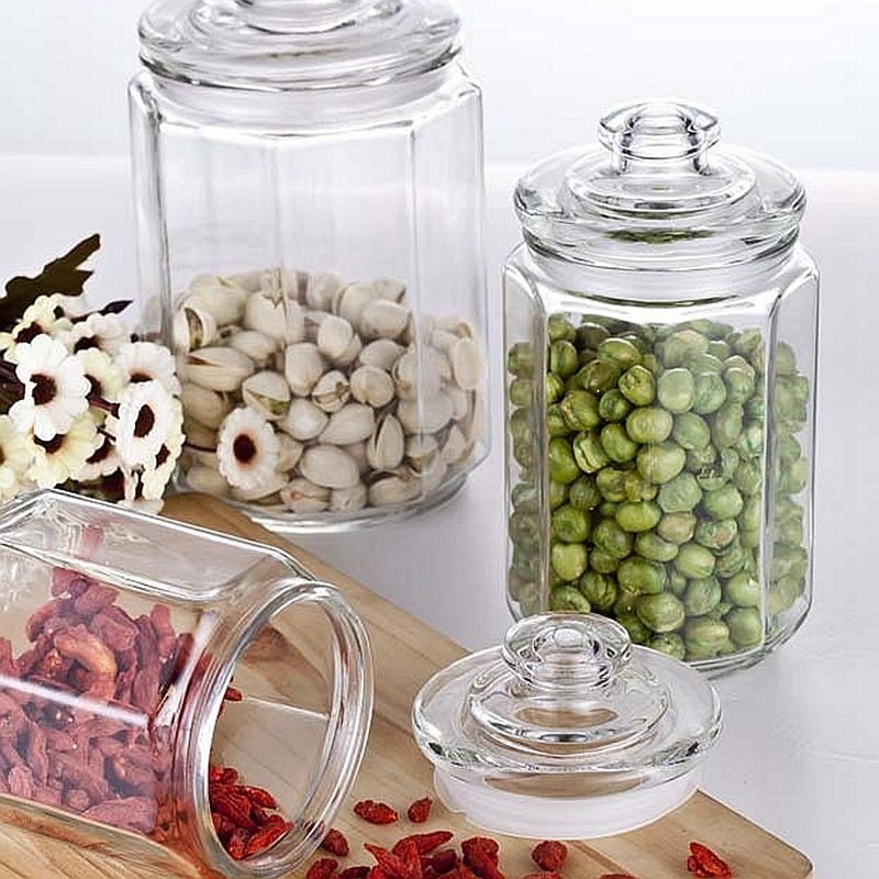 送料無料 春のラディアンス ガラス封入瓶 密封瓶 八角形ガラス瓶保存瓶 乾燥果実キャンディ瓶