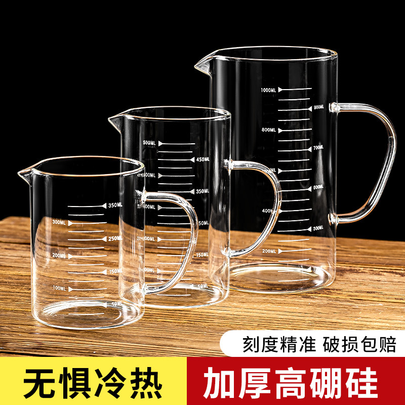 強化高温耐熱ガラス計量カップ(グラデーションカップ付きハンドル付き) 目盛りカップ フードグレードベーキングツール