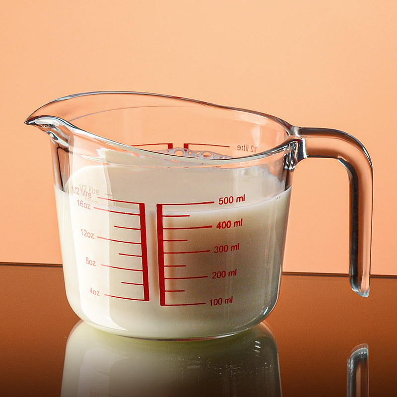 高温耐性のあるガラス計量カップ、家庭用ミルク、目盛りカップ、食品グレードのベーキング、卵を泡立てるカップ、水計量カップ