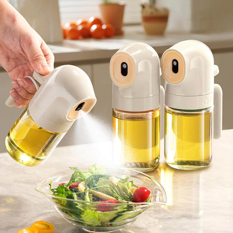 スプレー注ぎの二重用途オイルスプレーポット、オイルタンク、厚みガラススプレーオイルボトル、キッチンの家庭用醤油酢、食品グレードの食用油